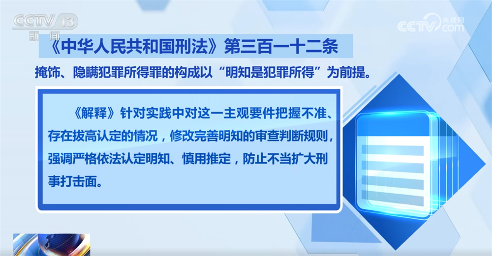 二是强调严格认定主观明知。根据刑法第三百一十二条的规定,掩饰、隐瞒犯罪所得罪的构成以“明知是犯罪所得”为前提。《解释》针对实践中对这一主观要件把握不准、存在拔高认定的情况,修改完善明知的审查判断规则,强调严格依法认定明知、慎用推定,防止不当扩大刑事打击面。