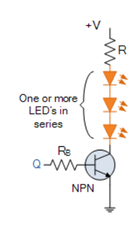 如果您有另一种圣诞灯序列器应用,需要驱动更多的LED或需要更多的输出功率,那么解码的输出可以用来驱动开关晶体管的基极或功率MOSFET器件的栅极,如图所示。