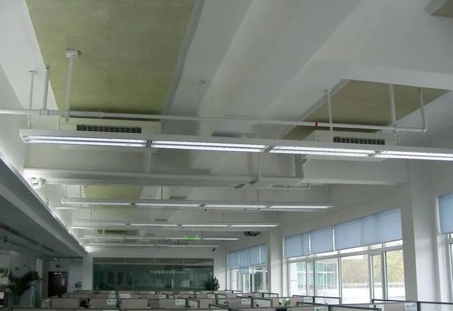 由于风机盘管及空调水系统管路都在写字楼办公区的吊顶上 ,存在漏水隐患。因此建议在空调设计和二次装修设计时应尽量使系统布置在房间端头 ,最大限度地留出没有水患的安全使用空间。