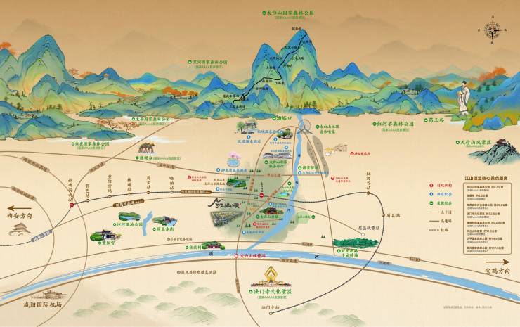 宋意园境:山水比德匠心造园。师法《千里江山图》,以望山水廊、横渠山房、水石雅舍贯穿大、中、近三大分区,打造“溪山行旅、曲水流觞、飞虹叠瀑、花溪廊桥、松林长卷”五大画卷,再现雅宋园林风骨