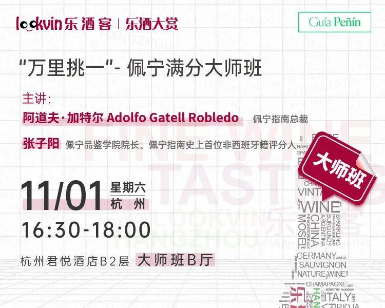 值得一提的还有,这将是佩宁指南首次来到中国杭州与广州讲授“大师班”。在大师班上,佩宁指南总裁与评分人,将就西班牙葡萄酒的发展风格、时下前沿、品质高度、市场动向以及什么样的西班牙葡萄酒值得给予满分,在两场大师班上与大家分享。