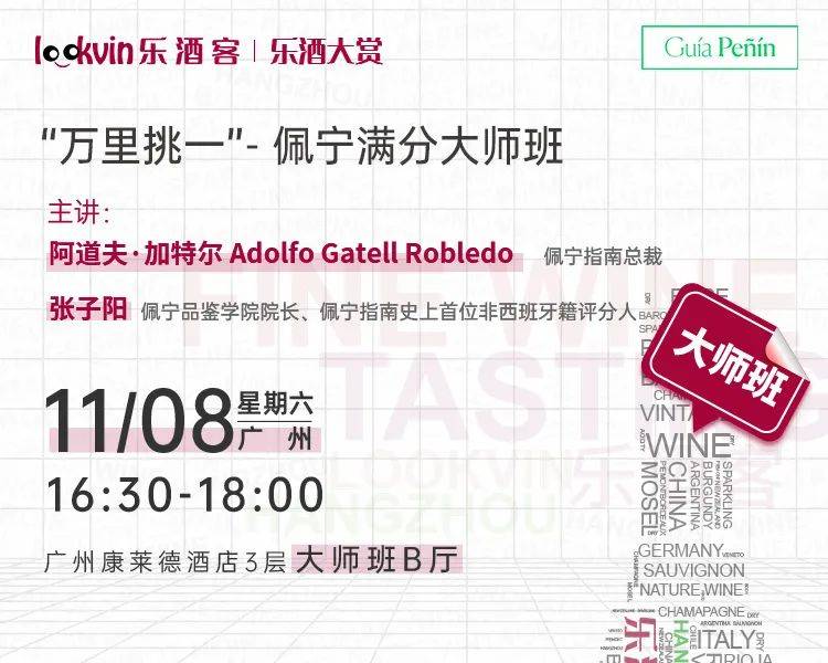 此行中国,由佩宁指南总裁阿道夫与佩宁指南评分人张子阳(佩宁史上首位非西班牙籍评分人)亲自带队,携“佩宁的罕见满分酒”来到杭州与广州,为两地的葡萄酒爱好者与从业人士,奉上一场极其珍贵的“万里挑一”- 佩宁满分大师班。